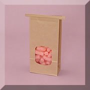 These bags are made of brown Kraft paper. We offer them with either one of two kinds of vapor liners: Polypropylene or Glassine. All have tin tie tops (metal tabs enclosed in paper with which to close bag). The tin tie tops create a reusable and re-closable bag mostly used for coffee but which are also great for Cookies, Candy, or anything that you wish to keep away from air. The tin tie on a window bag is located on the same side (of the bag) as the window, while a standard bag has the tin tie on the opposite side.