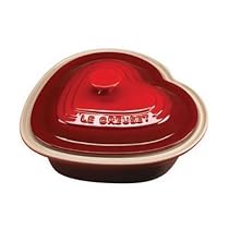 Le Creuset 2-1/2 qt. Heart Shaped Stoneware Baker Casserole with lid, Cerise Red.