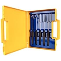 Made of stainless steel, polypropylene handle. For dipping of chocolate candies. Set includes: 4 round forks dia. 9/16-inch, 5/8-inch, 3/4-inch, 13/16-inch, 1 oval fork, 1 pear shaped fork, 1 spiral shaped fork, 1 two, three and four teeth forks.