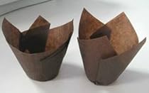 Note: The 3 larger tulip cups all have a 2-inch base and fit in a standard-size muffin tin. The smallest, however, is a mini tulip cup and does NOT fit in a standard muffin tin.Novacarts Tulip Baking Cup is made with Swedish grease-proof paper. This brown four-petal cup is 50 gsm (31 lb. paper). Heights are taken from the lowest point of where two adjoining petals meet as well as at the tips. Not a free-standing mold. NOTE: Picture shows two adjacent brown tulip cups. They are not the same. The cup on the right side has uniform tips, meaning tips that reach an equal height. The cup on the left has random tips, tips that reach different heights. Because of the way that latter cup is produced, the result is a whimsical shape, with no two cups identical (even within the same box). See table below for which sizes come in random and which in uniform.INDIVIDUAL SIZES & NUMBER PER CASE Item # Dimensions Number Per Case 17550B 2" Base, 2-3/4" Low Side, 4" High Point, UNIFORM TIP 2000 16050B 2" Base, 2" Low Side, 3-1/2" High Point, RANDOM TIP 1800 13250B 2" Base, 1-1/4" Low Side, 2-3/4" High Point, RANDOM TIP 2040 11035B (mini) 1-3/8" Base, 1-3/8" Low Side, 2-1/2" High Point, RANDOM TIP 4800.